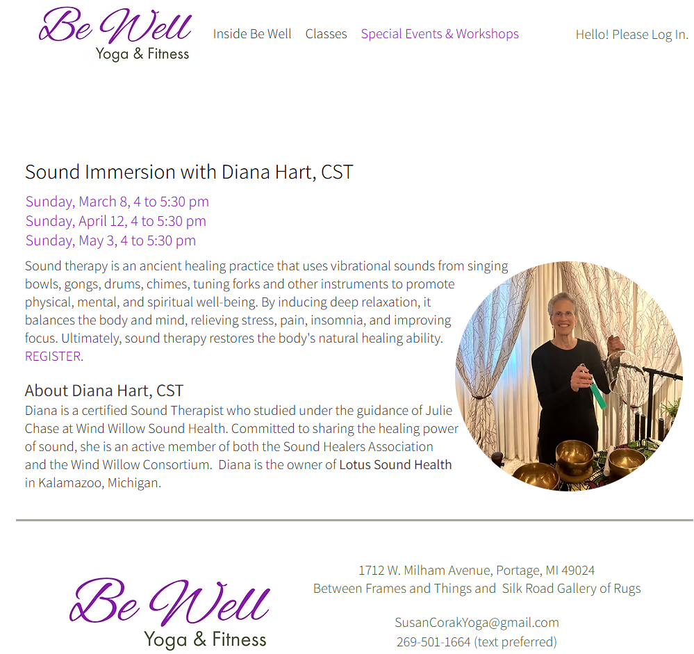 We begin with 30 minutes of restorative Yoga with Susan Corak, followed by a 60-minute sound bath with Diana. Join us!